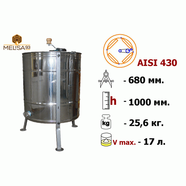 Centrifuga manuala cu 4 casete, din inox AISI430, pe suport.