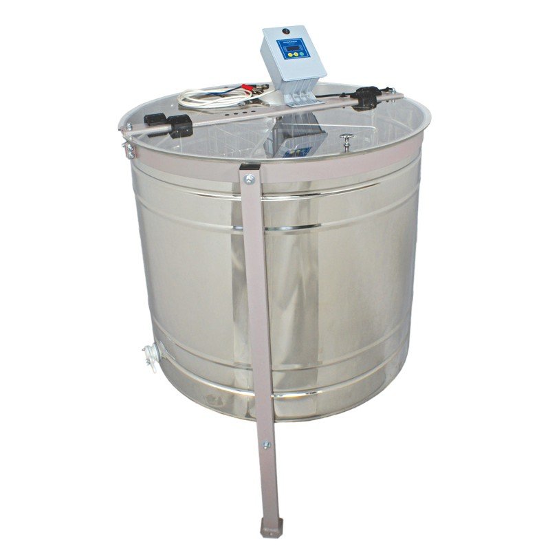 Centrifuga este fabricată din oțel inoxidabil și este adaptată pentru a lucra în cîmp. Casetele pentru rame sunt mobile, se rotesc in dreapta /stânga şi nu necesită schimbarea ramelor pentru extragerea mierii de pe ambele părţi, ceea ce prezintă un mare avantaj. Permite rotaţia rapidă a ramelor şi nu distruge rame.