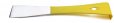 Стамеска-гвоздодер изготовлена из высококачественной нержавеющей стали. Ручка стамески окрашена в ярко желтый цвет акриловой краской. Такая краска очень износостойка и долговечна. Гвоздодер придает стамеске больший функционал.
