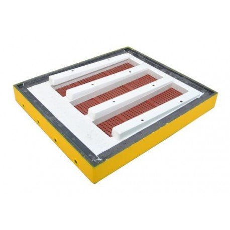 Он состоит из рамы и установленной в ней пыльцеотбирающей решетки с диаметром отверстий 4-4,5мм. Ставится между высоким гигиеническим дном и нижним корпусом. Проходящие сквозь решетку пчелы роняют пыльцу прямо в выдвижной лоток дна. В передней части пыльцеуловитель имеет четыре небольших отверстия для беспрепятственного вылета пчел из улья.